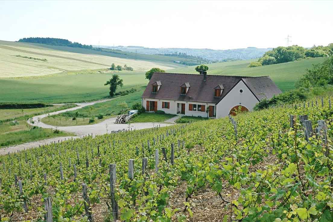 Les parcelles situées à moins de 2 km de la cuverie, exposées Sud et Sud-Est, ont été plantées entre 1993 et 2023. Elles sont toutes entourées de forêts, de haies ou de prairies dans le but de conserver la biodiversité de chacune. Pour aller encore plus loin et observer le comportement du sol et de la vigne, un hectare est travaillé en en traction animale.